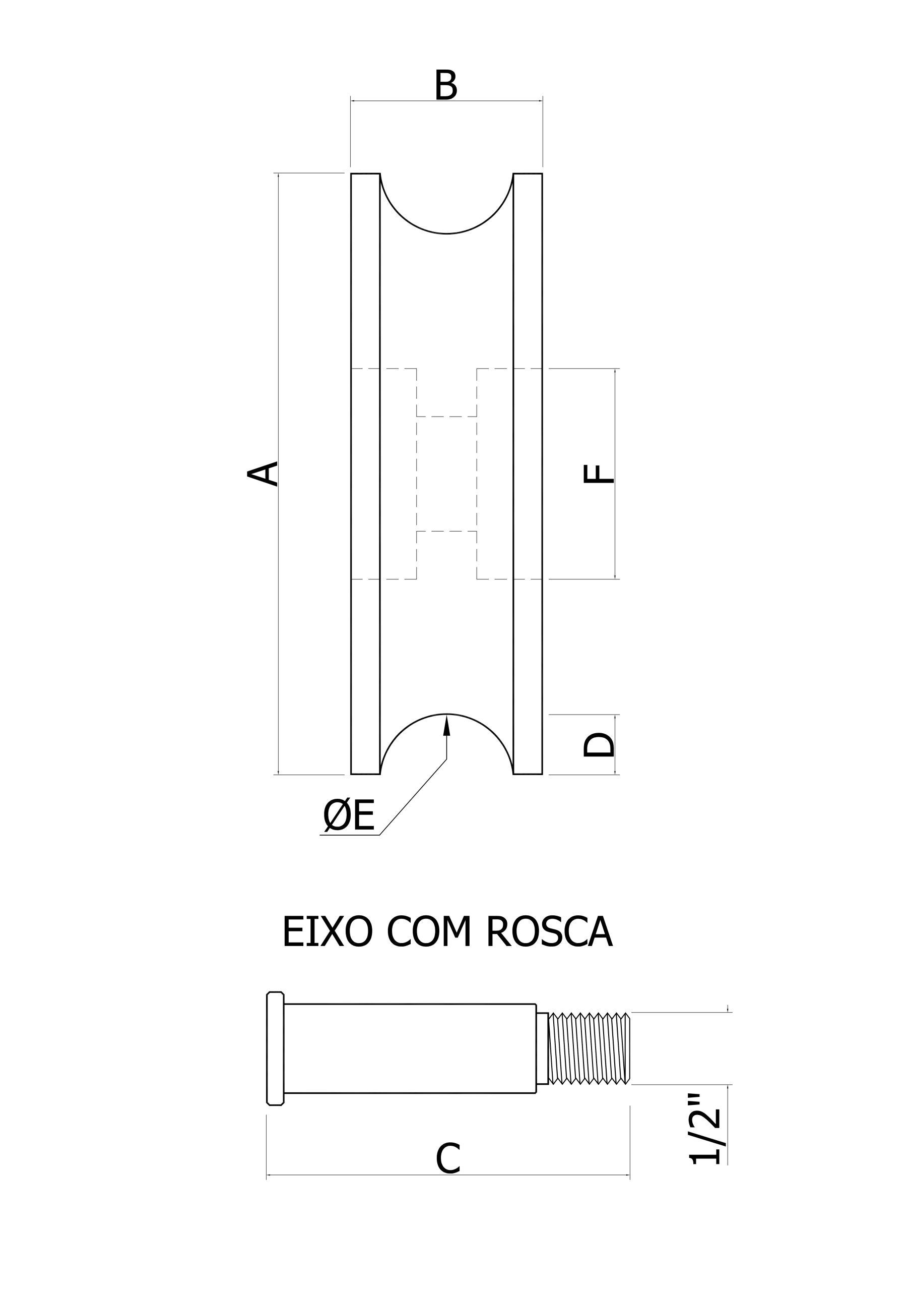 ESPECIAL ROLDANA CANAL (REDONDO) EM AÇO 1020 COM 2 ROLAMENTOS EIXO C/ CABEÇA E ROSCA EM UMA DAS PONTAS OU EIXO FURADO P/ PARAFUSO