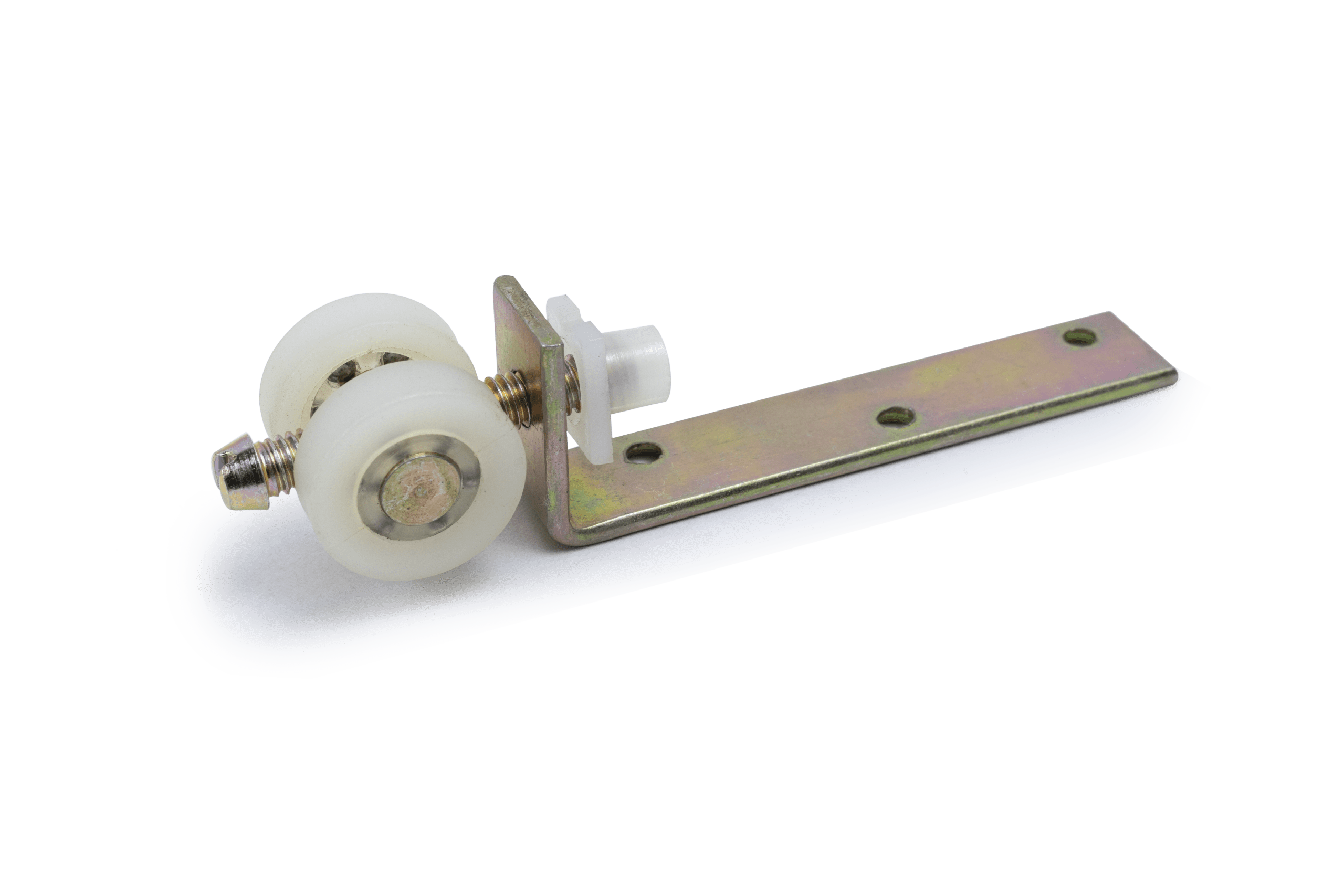 RODÍZIO DUPLO EM NYLON COM SUPORTE EM L ZINCADO