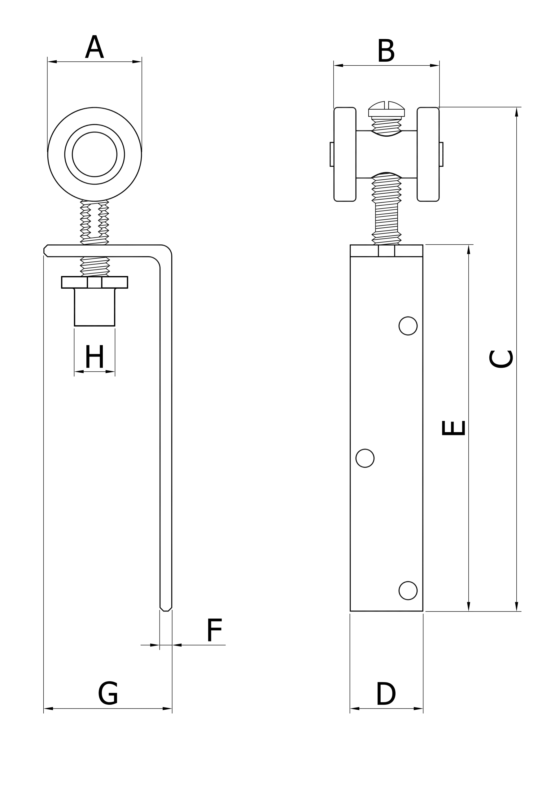 RODÍZIO DUPLO EM NYLON C/ SUPORTE EM L ZINCADO COM ROLAMENTO