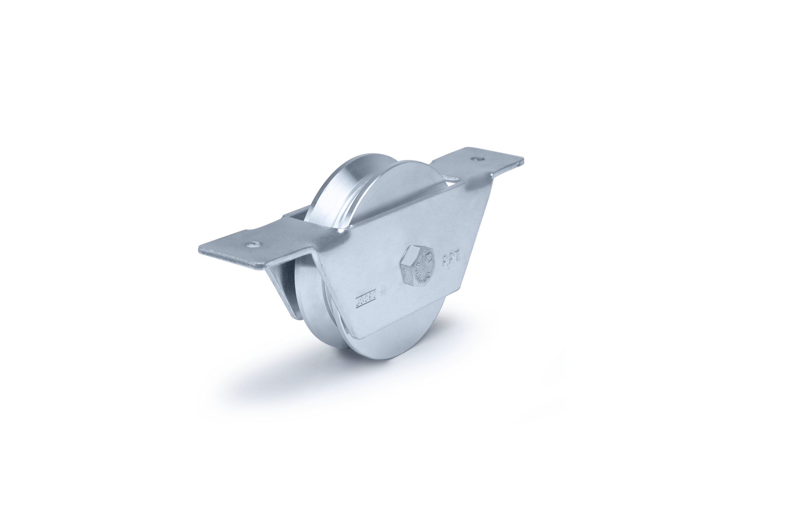ROLDANA CANAL (V) EM AÇO 1020 C/ SUPORTE ABERTO C/ 1 ROLAMENTO E PARAFUSO