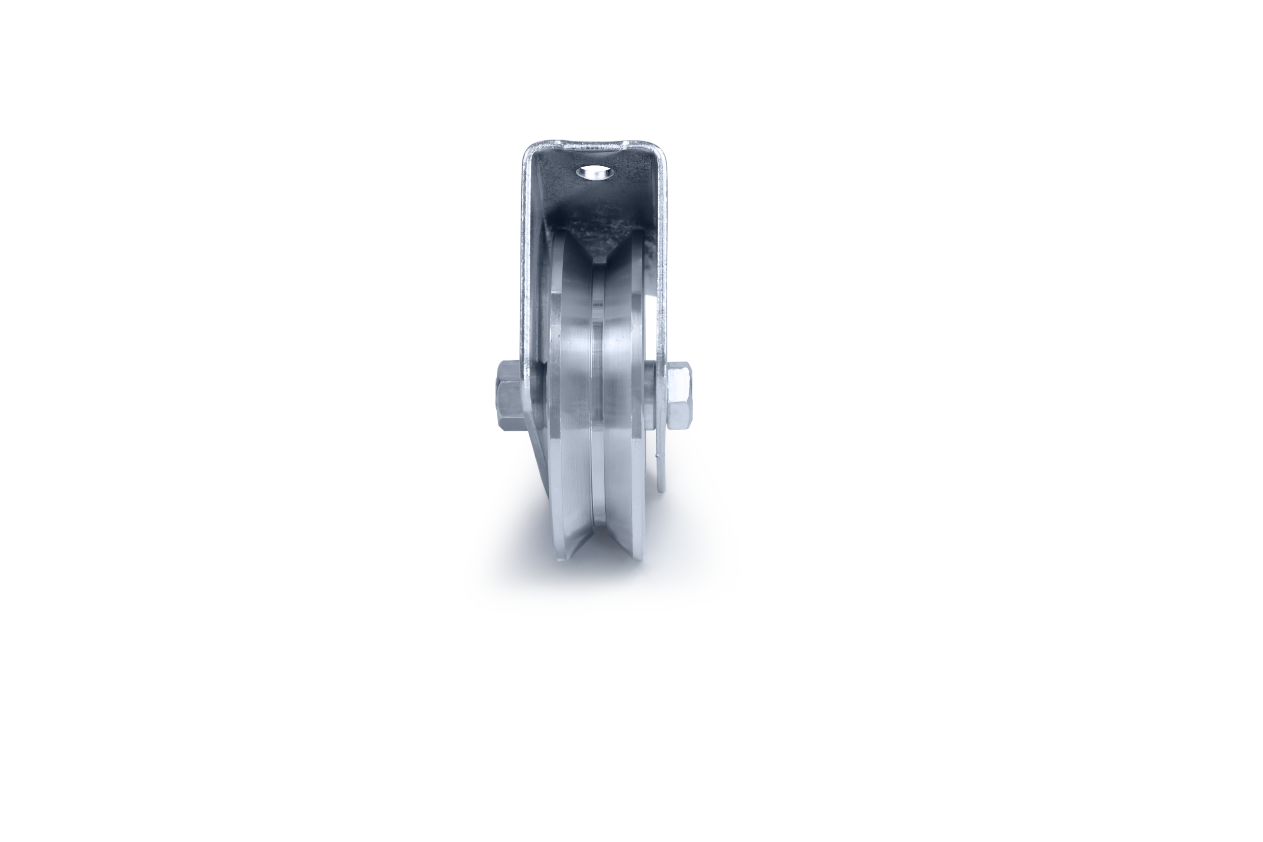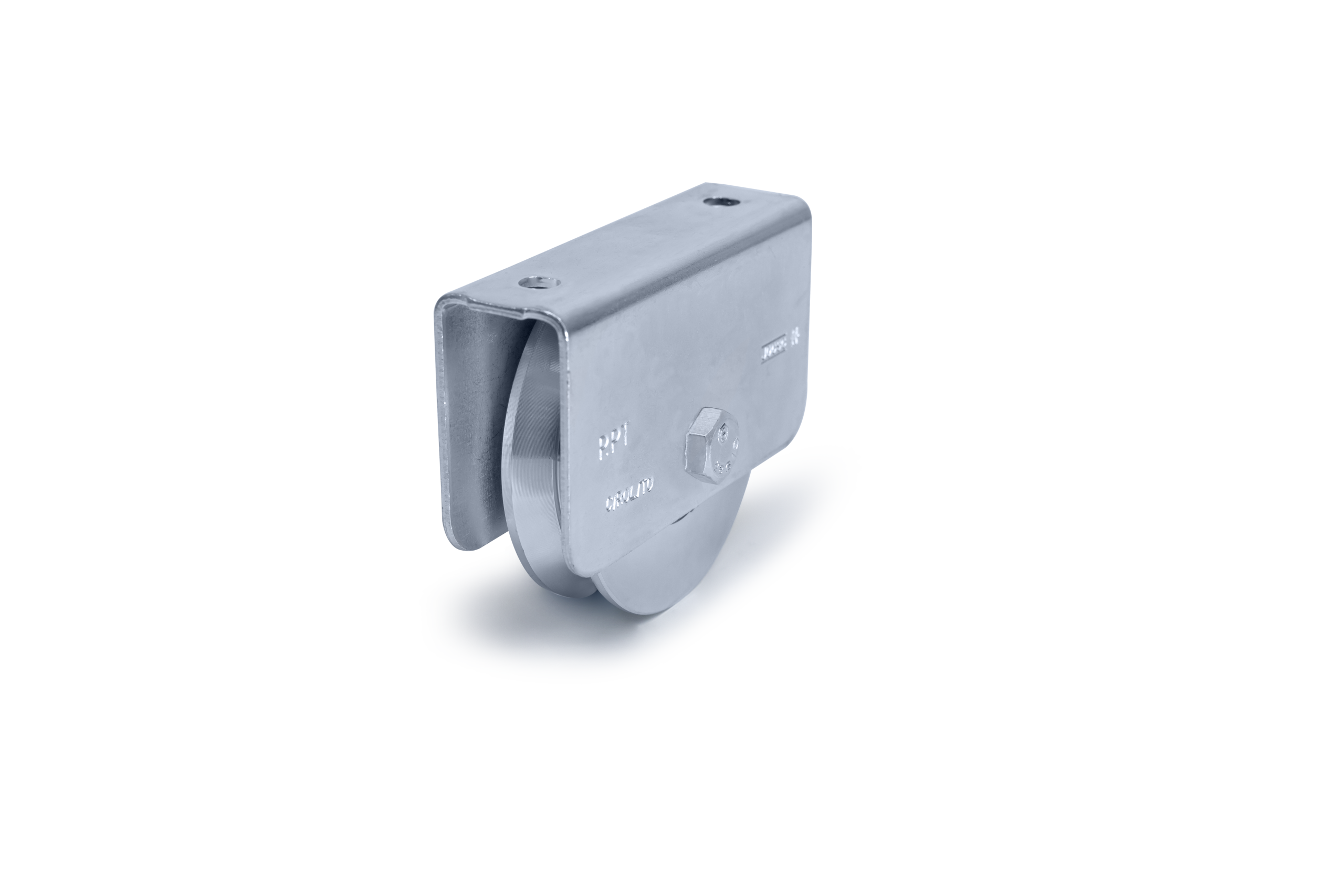 ROLDANA CANAL (V) EM AÇO 1020 COM SUPORTE E 1 ROLAMENTO C/ PARAFUSO