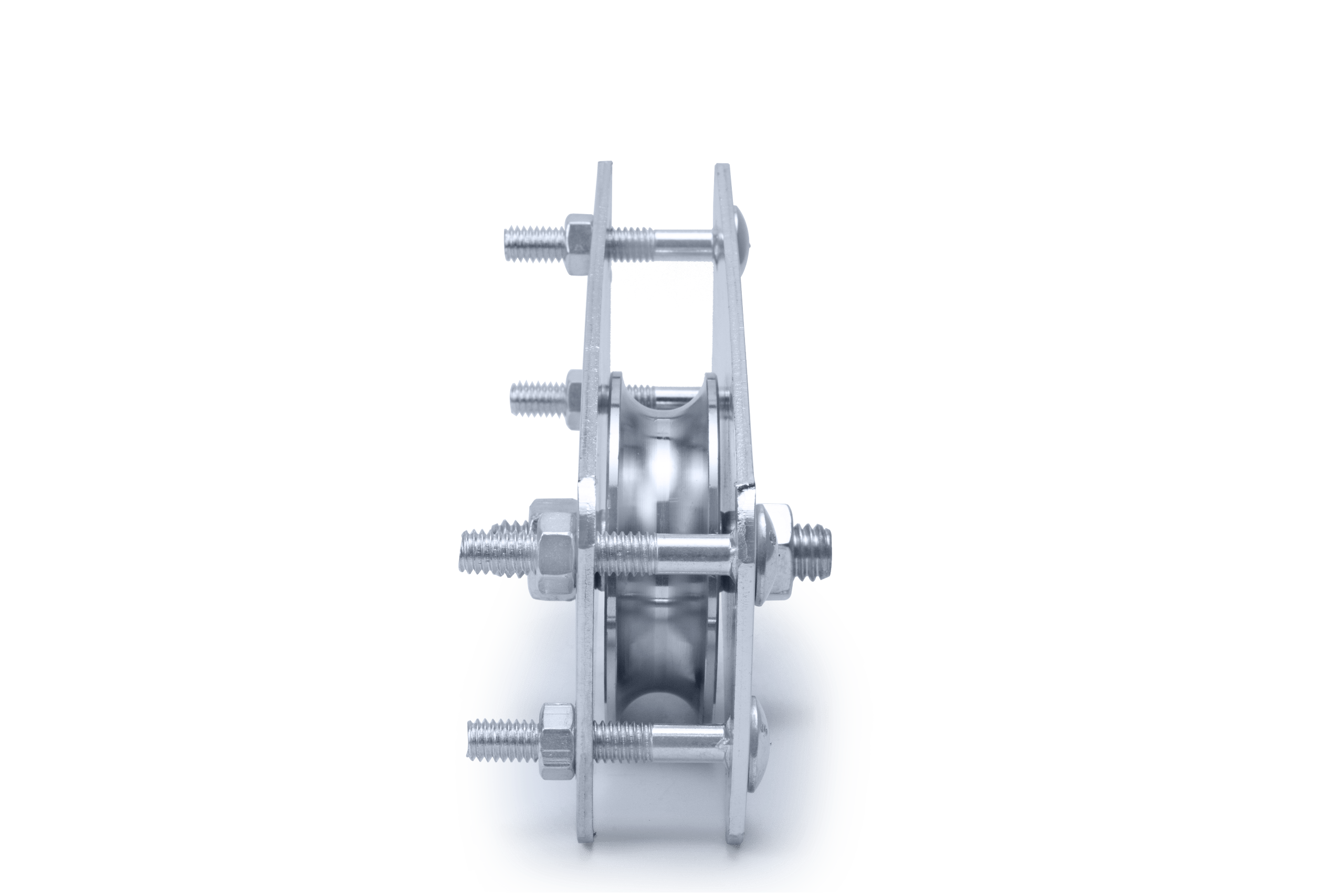 ROLDANA CANAL (V) EM AÇO 1020 COM 1 ROLAMENTO E SUPORTE LATERAL COM ACABAMENTO ZINCADO