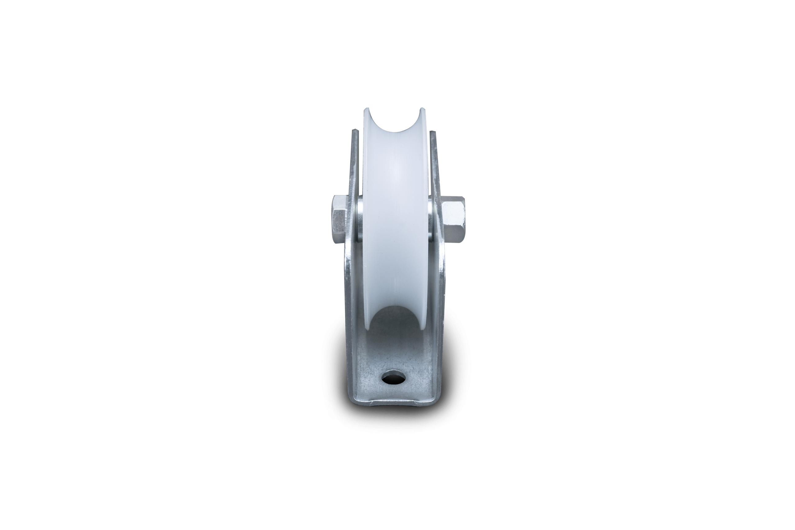 ROLDANA CANAL (REDONDO) EM NYLON C/ SUPORTE E 1 ROLAMENTO C/ PARAFUSO