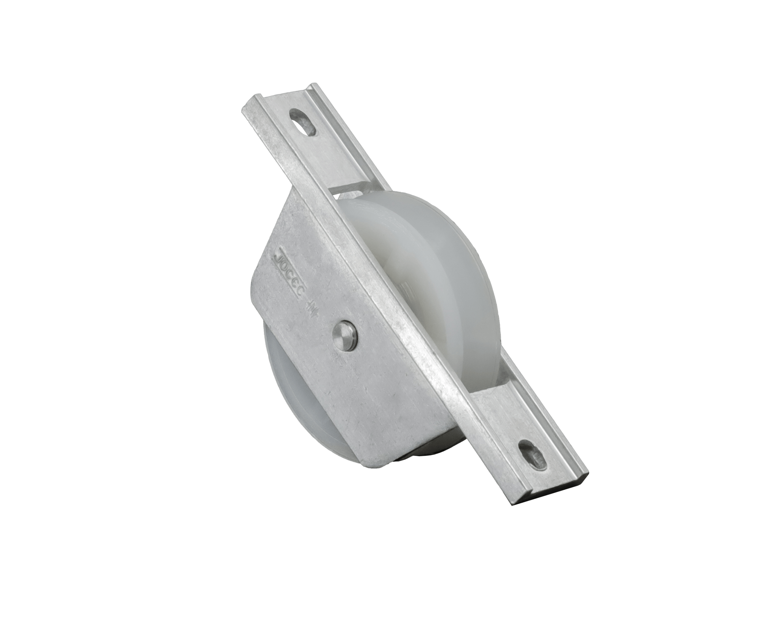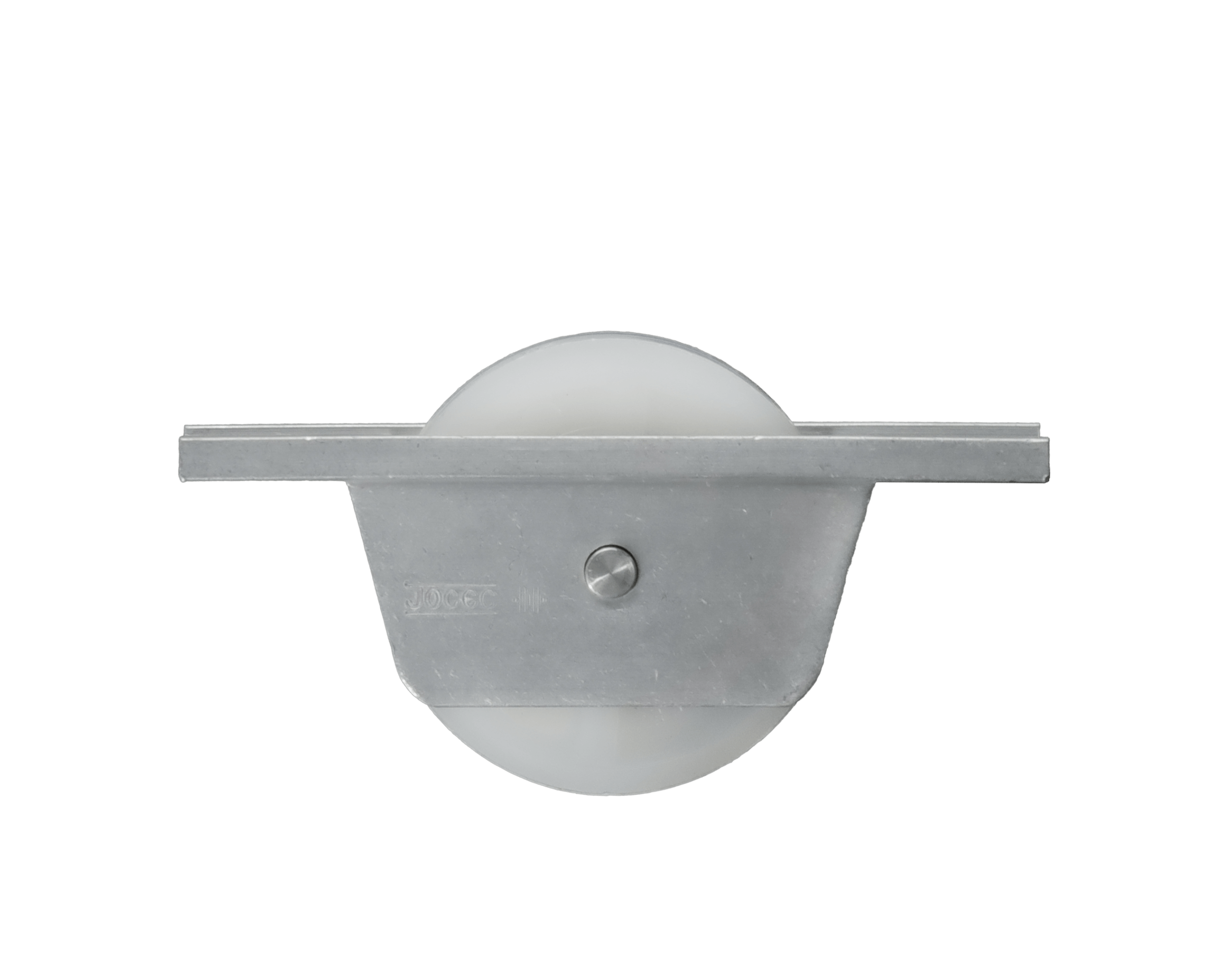 ROLDANA CANAL V 90º EM NYLON SUPORTE ABERTO EM ALUMÍNIO